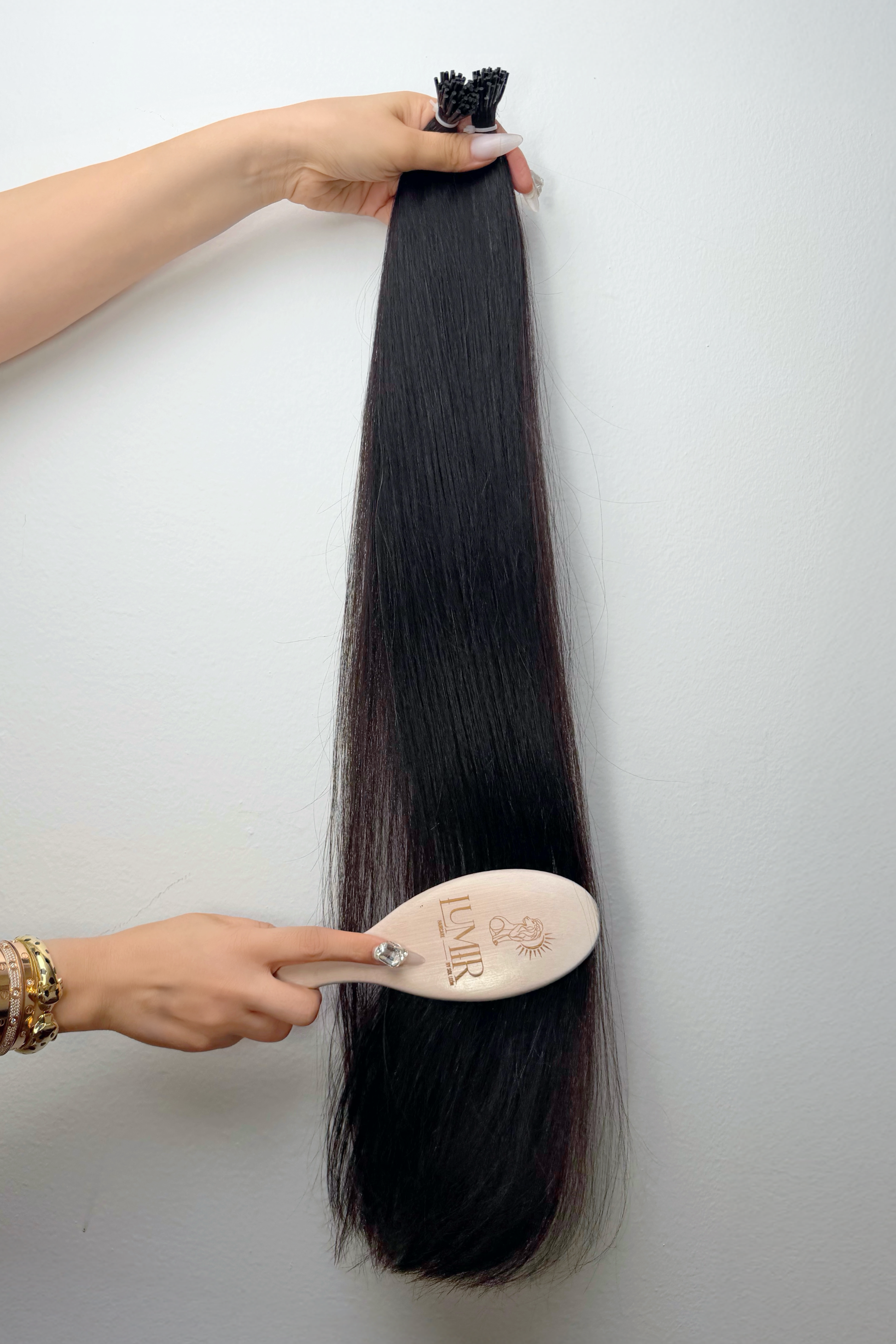 The premium keratin encapsulation provides an invisible, secure, and long-lasting bond, preserving the purity of the hair with no shedding while brushing or after application.