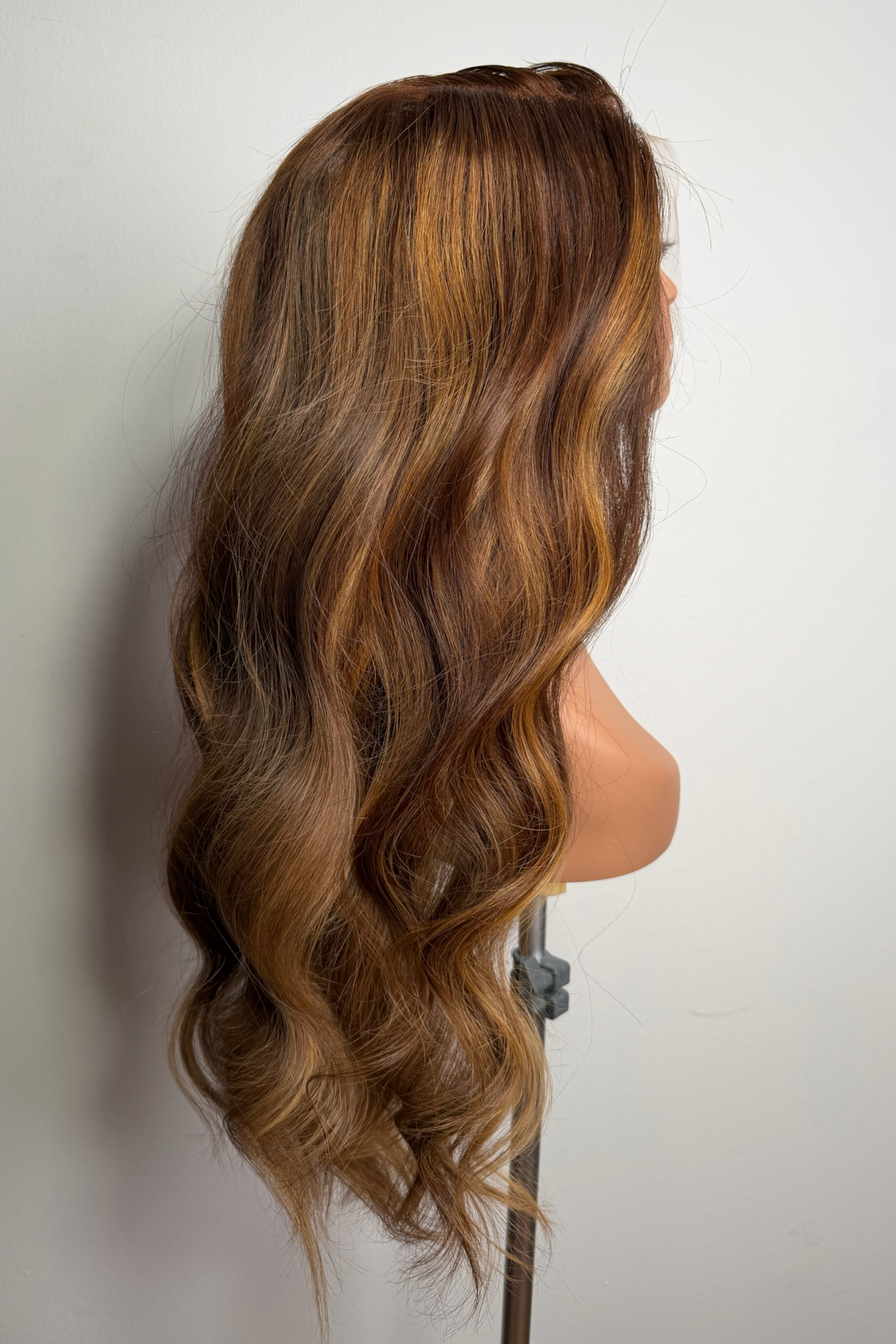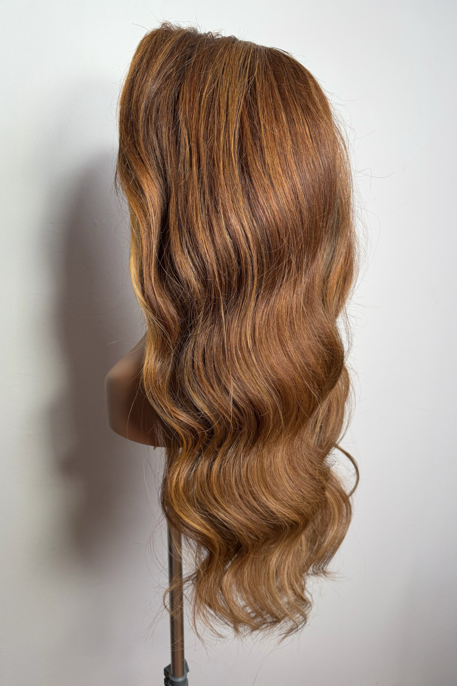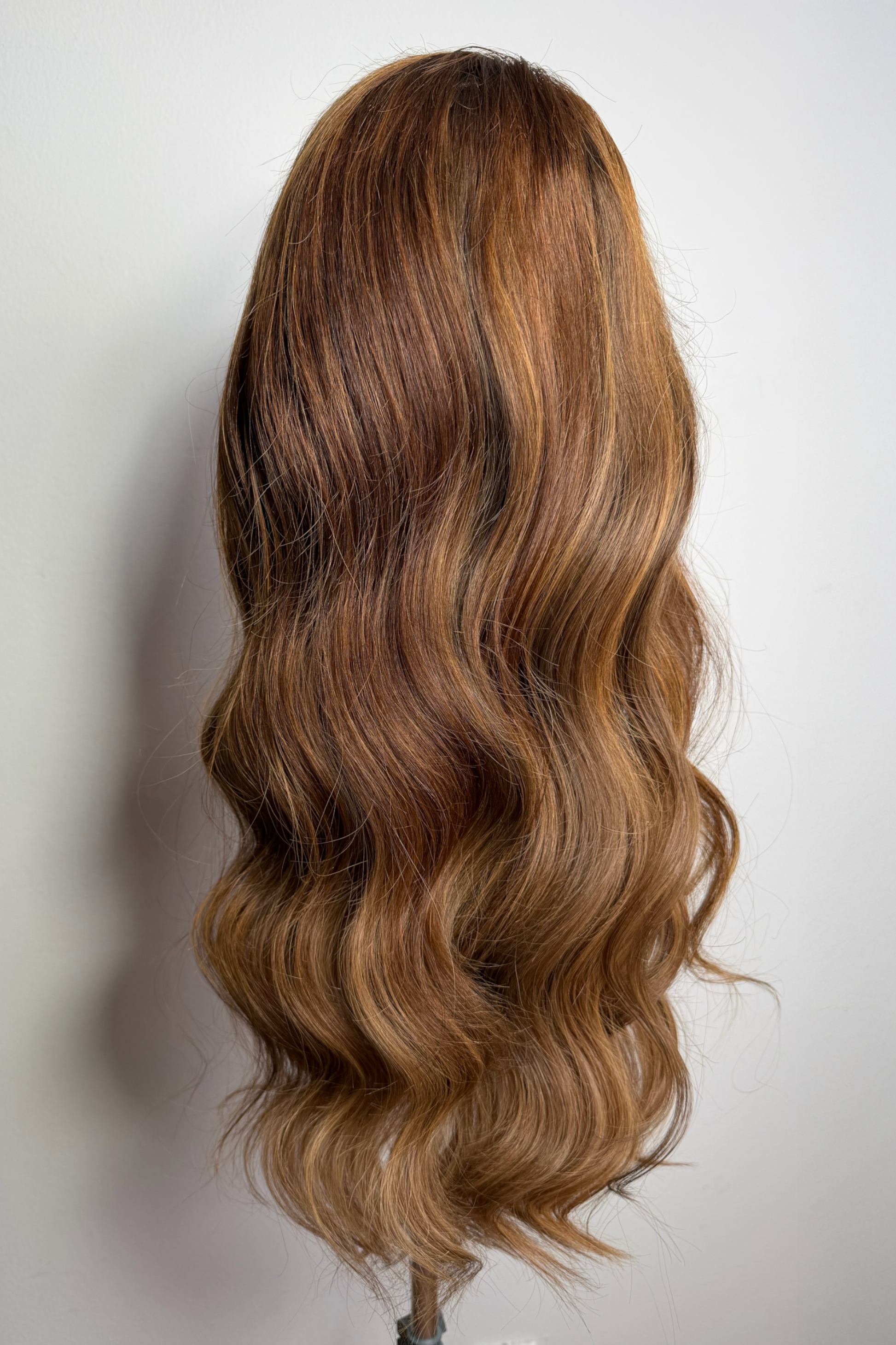 Descubre la elegancia del color Golden Brown, una tonalidad cálida y luminosa que realza tu belleza con un toque sofisticado. Nuestra peluca premium está confeccionada con fibras de alta calidad que imitan a la perfección el movimiento y la suavidad del cabello natural.