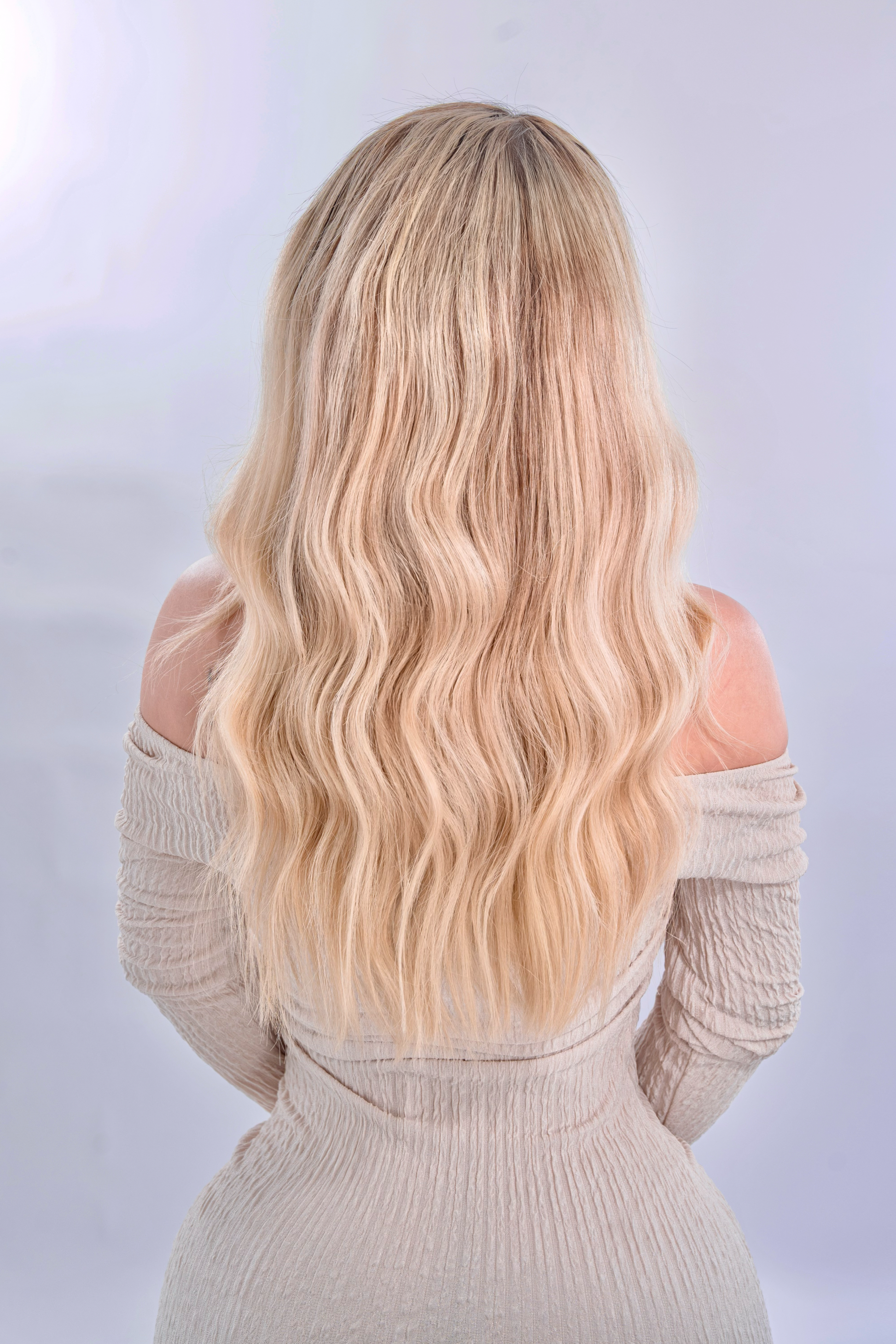 Su delicado efecto balayage en tonos ceniza iluminada despliega un juego de matices sutiles y elegantes, evocando la luz natural acariciando el cabello.