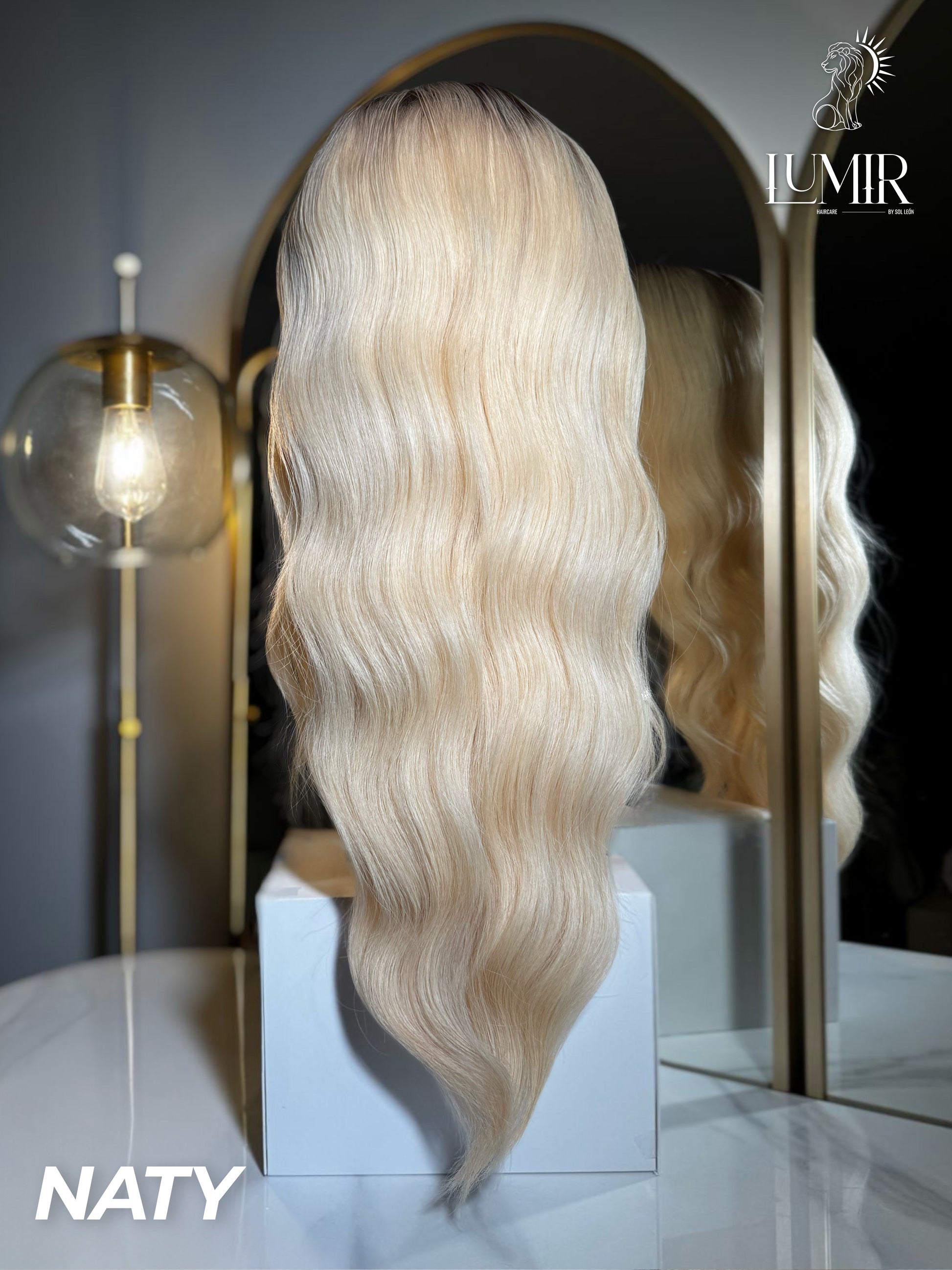 Naty es luz dorada convertida en elegancia. Su tono rubio dorado irradia calidez, mientras sus 30 pulgadas de ondas naturales caen con suavidad y presencia.